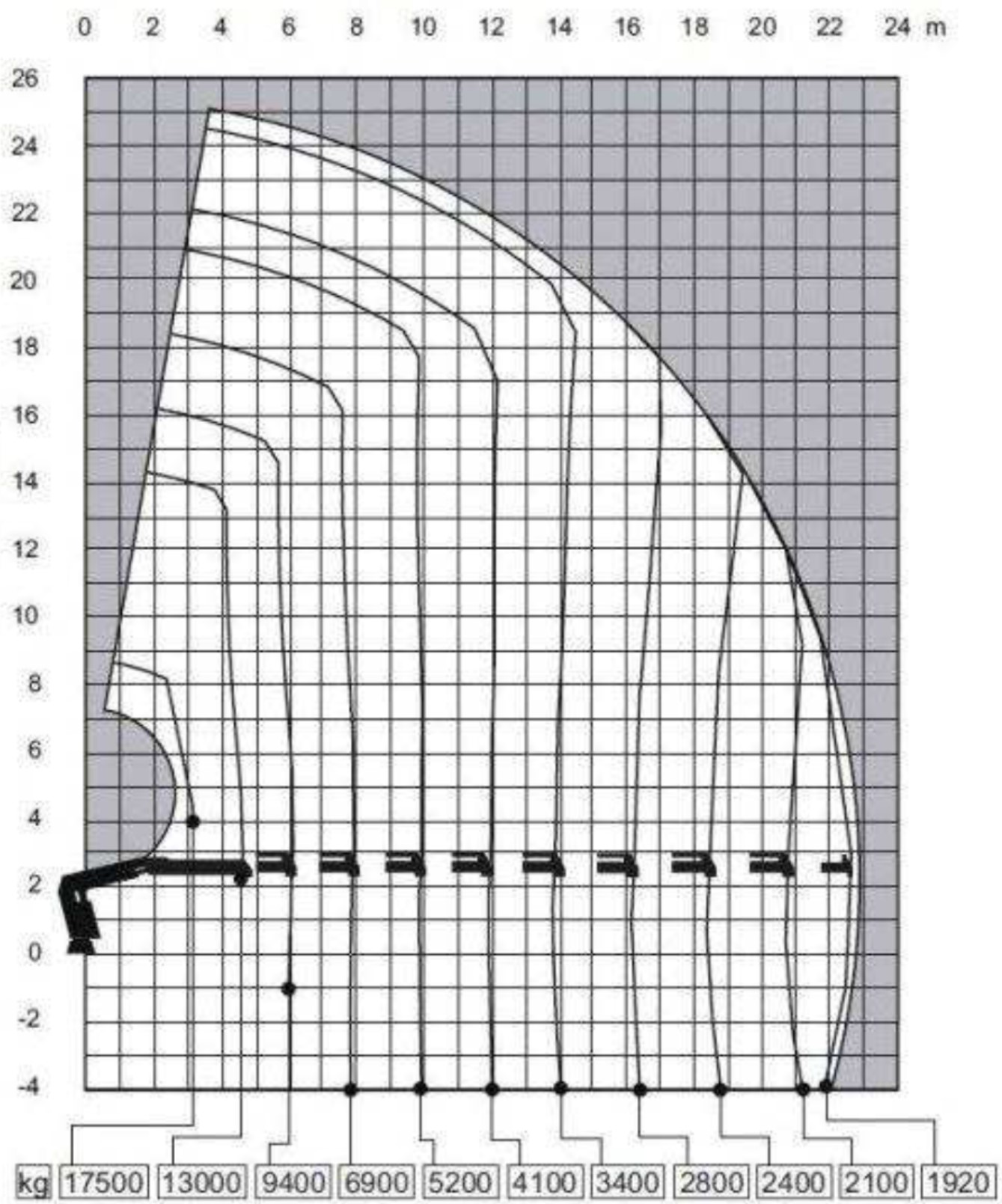 237. 237. W oparciu o przedstawiony diagram wskaż maksymalną masę ładunku, jaką można podać na odległość 17 m: