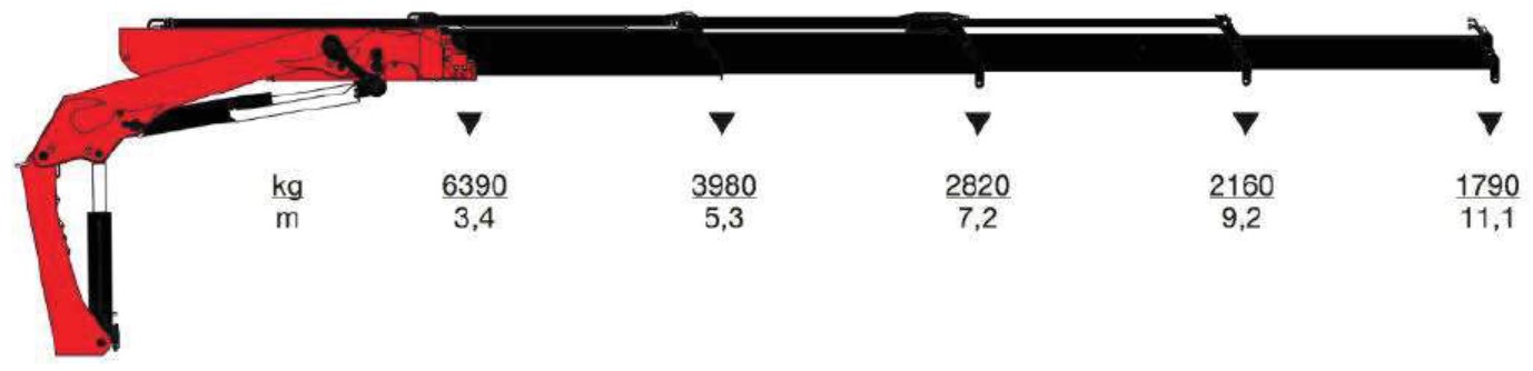 228. 228. W oparciu o przedstawiony diagram określ na jaką maksymalną odległość można bezpiecznie podać ładunek o masie 3980 kg: