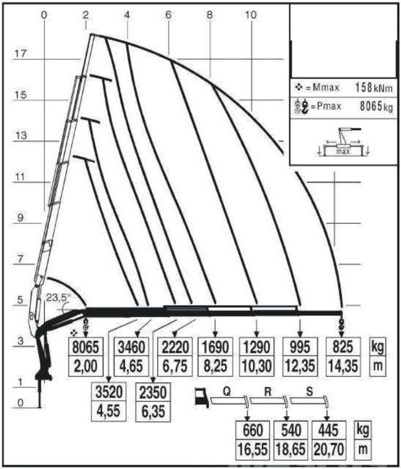 230. 230. W oparciu o przedstawiony diagram wskaż poprawne parametry pracy żurawia: