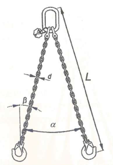 268. 268. W oparciu o przedstawiony rysunek wskaż wartość A (kąt α ) dla zawiesia dwucięgnowego: